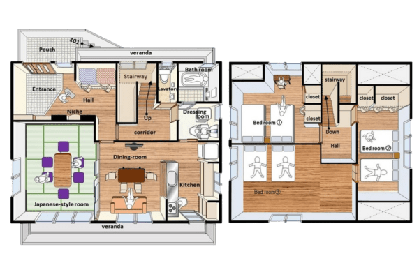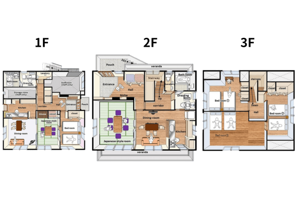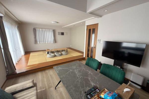 :清潔で落ち着いた空間、家具・家電完備。ご家族やグループ旅行にも最適